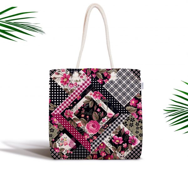 Kare Puan Çizimli Dekoratif Dijital Baskılı Fermuarlı Kumaş Çanta