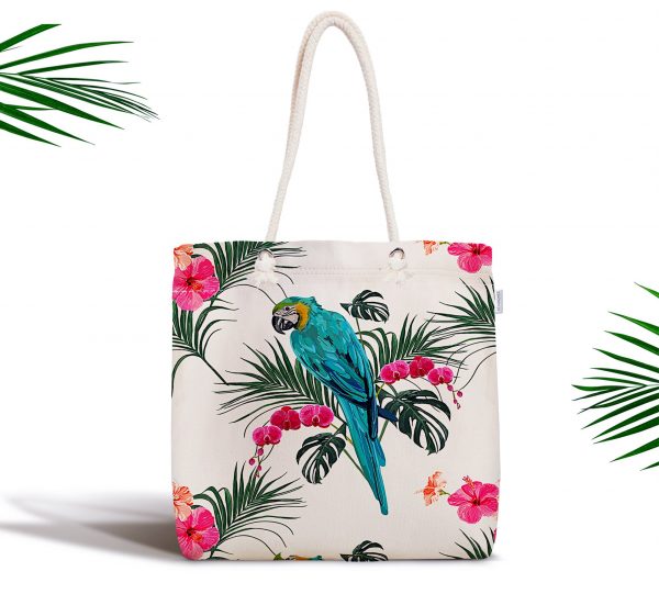 Mavi Papağan Dijital Baskılı Fermuarlı Kumaş Çanta