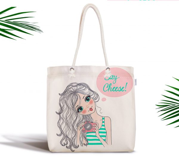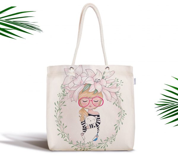 Fashion Girl Dijital Baskılı Modern Fermuarlı Kumaş Çanta