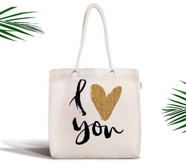 Love You Dijital Baskılı Modern Fermuarlı Kumaş Çanta