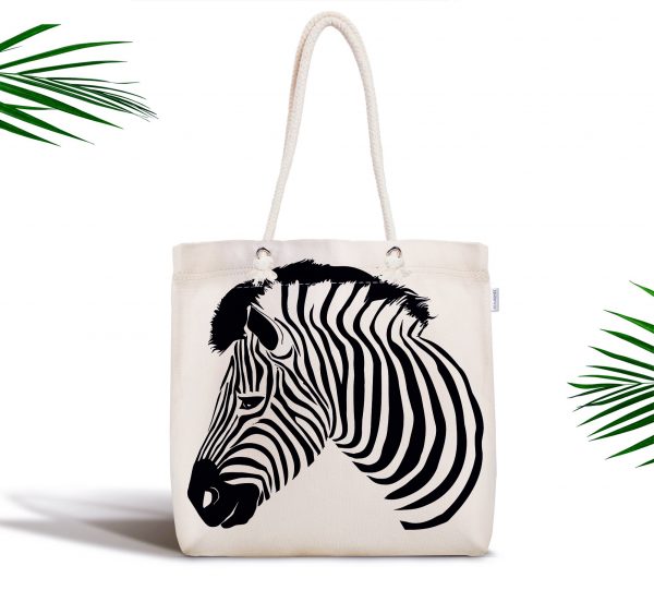 Siyah Beyaz Zebra Dijital Baskılı Modern Fermuarlı Kumaş Çanta