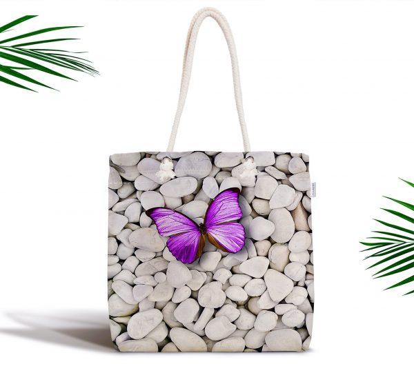 Modern Kelebek Dijital Baskılı Fermuarlı Modern Kumaş Çanta
