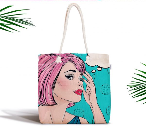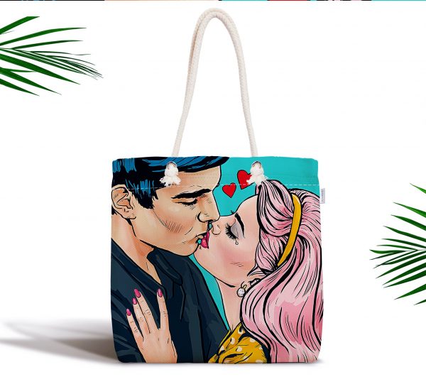 Pop Art Resimli Dijital Baskılı Fermuarlı Modern Kumaş Çanta