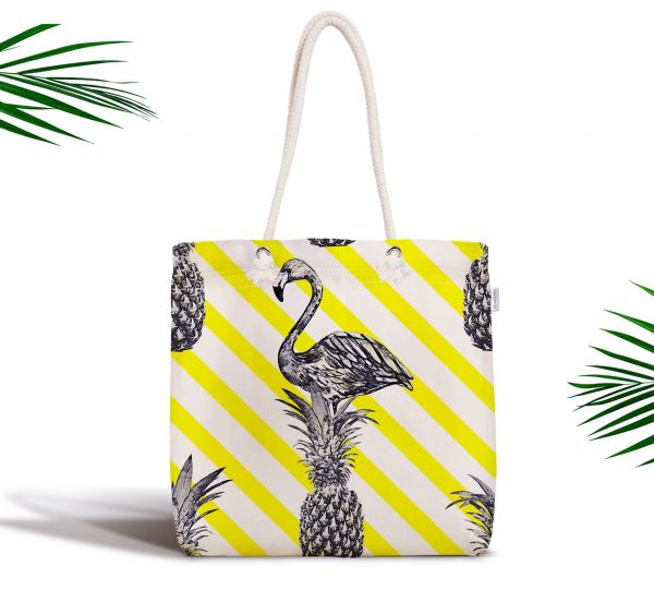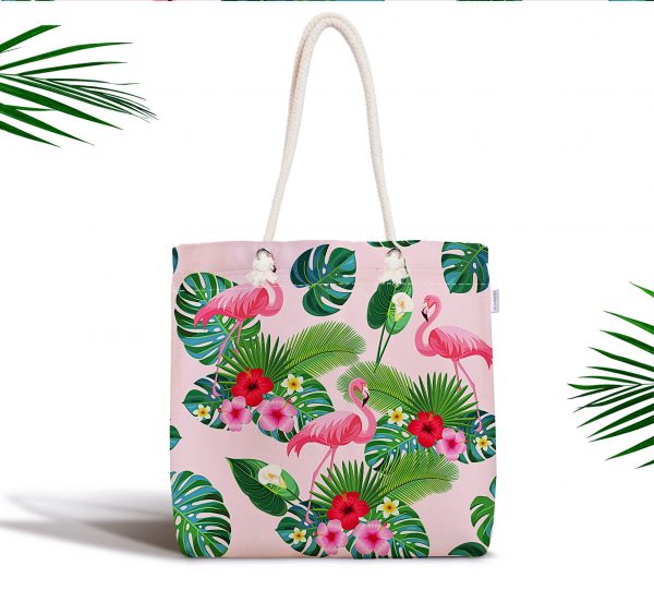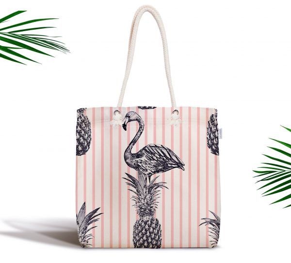 Modern Flamingo Desenli Dijital Baskılı Fermuarlı Kumaş Çanta