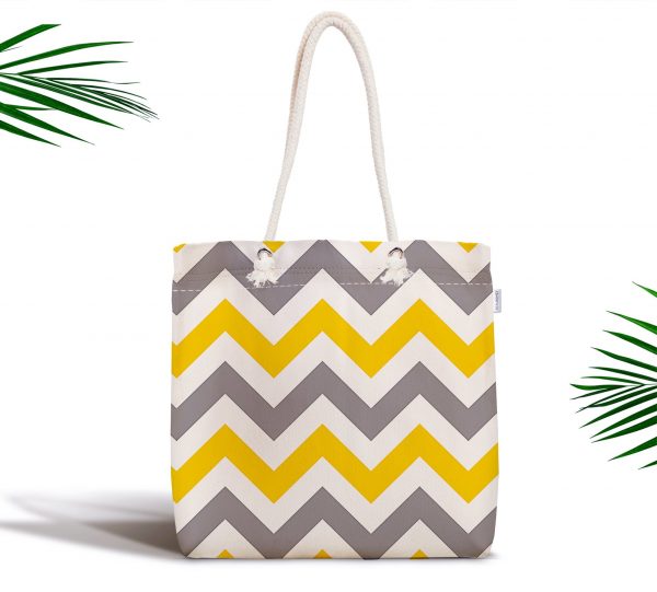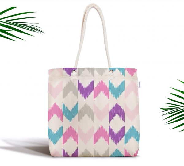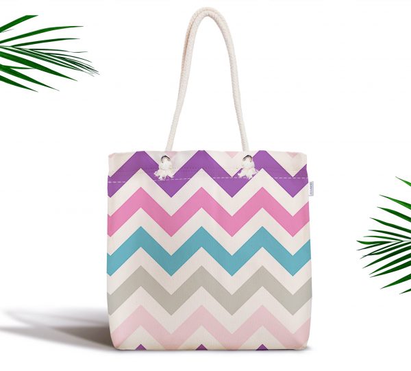 Zigzag Desen Dijital Baskılı Fermuarlı Modern Kumaş Çanta