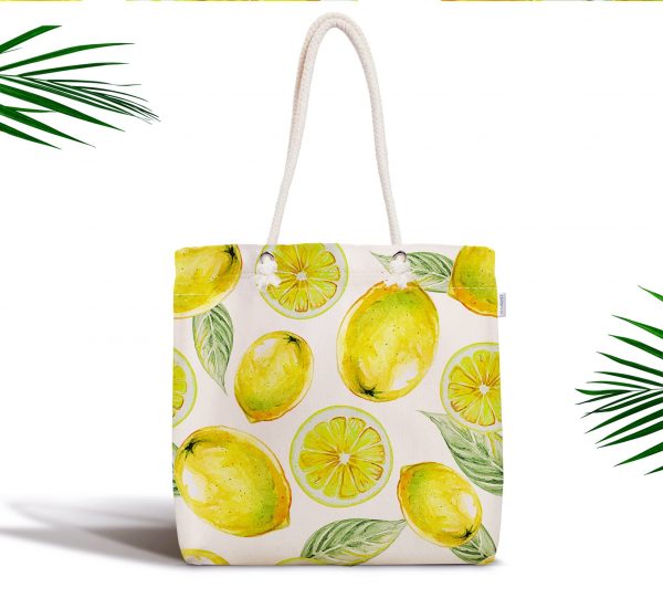 Limon Desenli Dijital Baskılı Fermuarlı Modern Kumaş Çanta