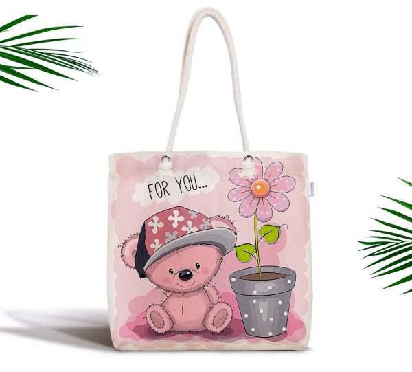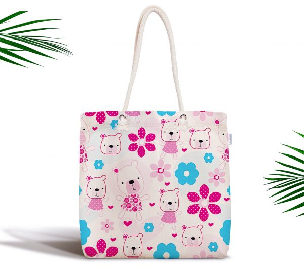Çocuk Desenli Ayıcıklar Dijital Baskılı Fermuarlı Kumaş Çanta