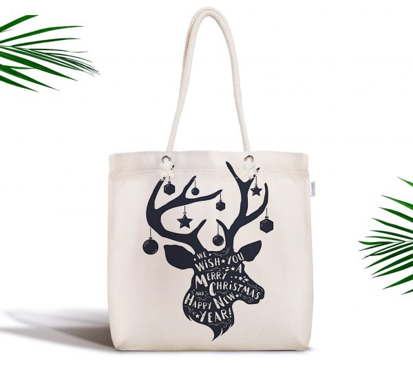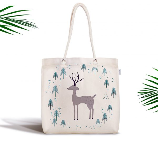 Modern Geyik Temalı Dijital Baskılı Fermuarlı Kumaş Çanta