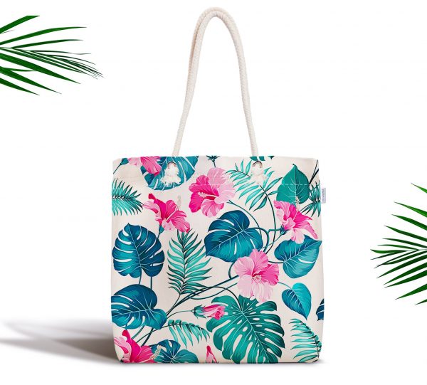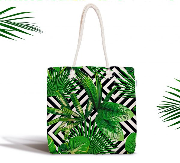 Modern Yaprak Desenli Dijital Baskılı Fermuarlı Kumaş Çanta
