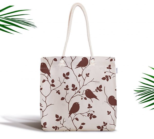 Daldaki Kuşlar Dijital Baskılı Fermuarlı Kumaş Çanta