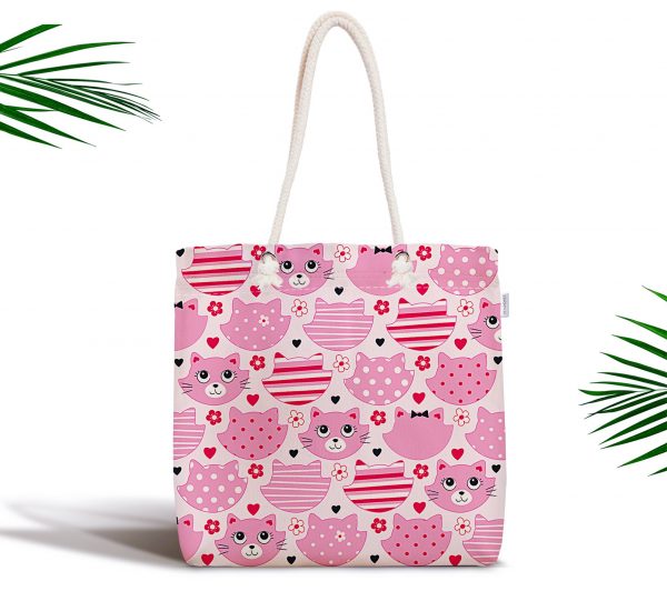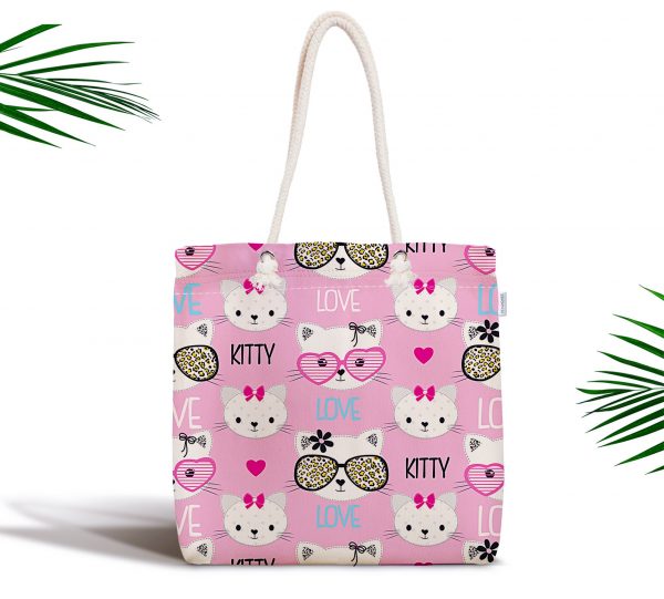 Kitty Love Desenli Dijital Baskılı Fermuarlı Kumaş Çanta