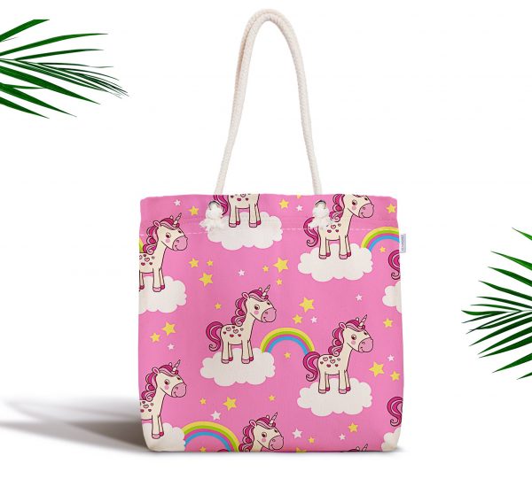 Unicorn Desenli Dijital Baskılı Fermuarlı Kumaş Çanta