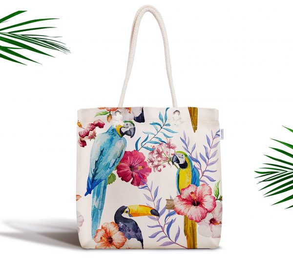 Papağan Desenli Dijital Baskılı Fermuarlı Kumaş Çanta