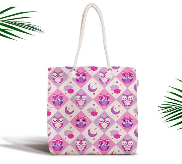 Uykucu Baykuşlar Dijital Baskılı Fermuarlı Kumaş Çanta