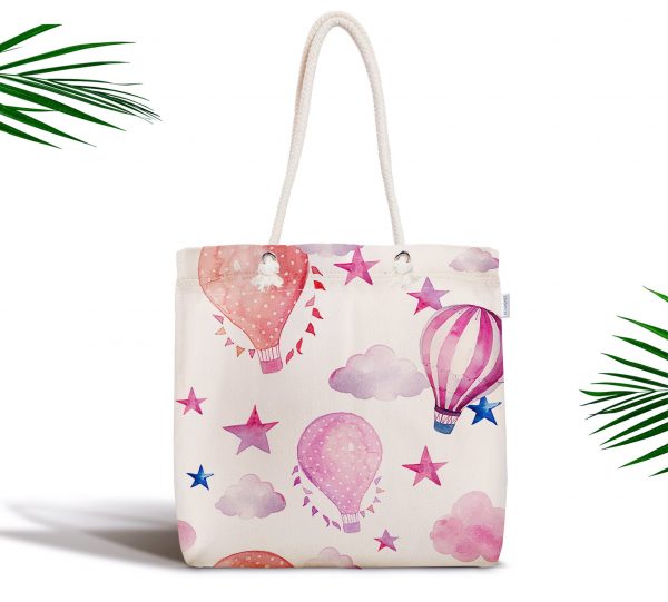 Watercolor Renkli Balonlar Dijital Baskılı Fermuarlı Kumaş Çanta