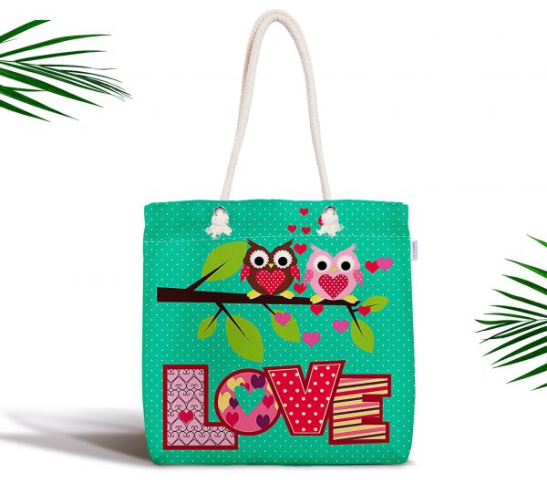 Baykuş Desenli Dijital Baskılı Fermuarlı Modern Kumaş Çanta