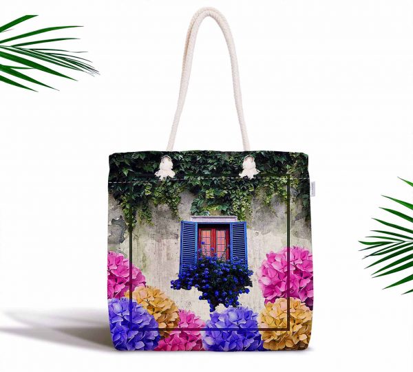 Çiçek Penceresi Dijital Baskılı Modern Fermuarlı Kumaş Çanta