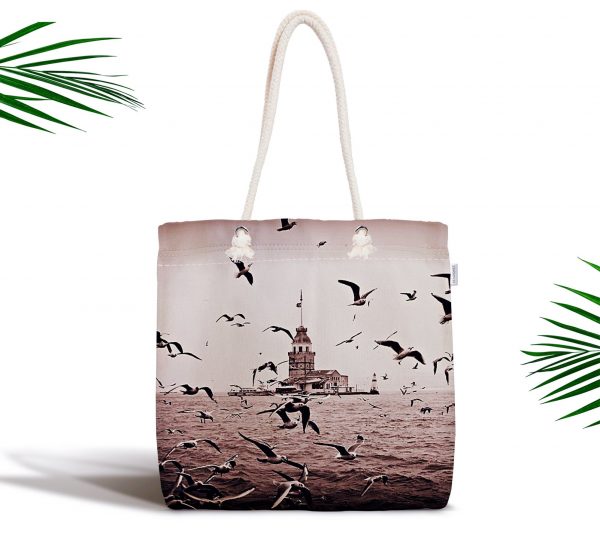 Kız Kulesi Dijital Baskılı Fermuarlı Modern Kumaş Çanta