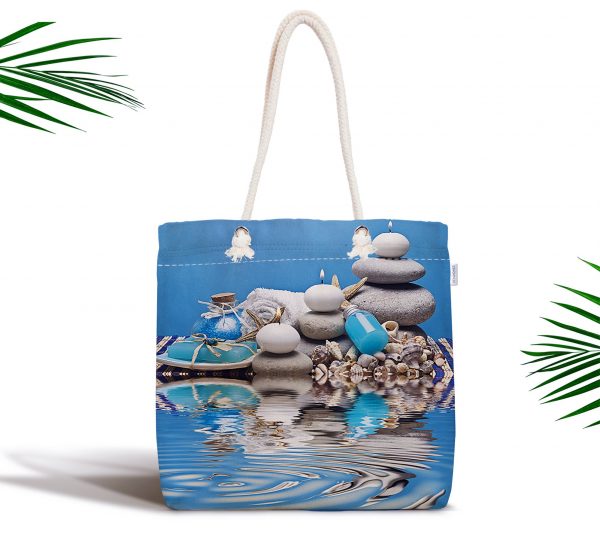 Taş Desenli Dijital Baskılı Fermuarlı Modern Kumaş Çanta