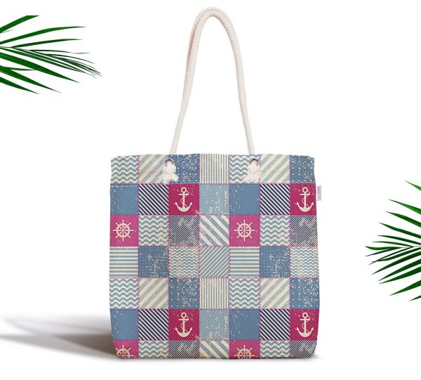 Ekose Denizci Motifli Dijital Baskılı Fermuarlı Kumaş Çanta