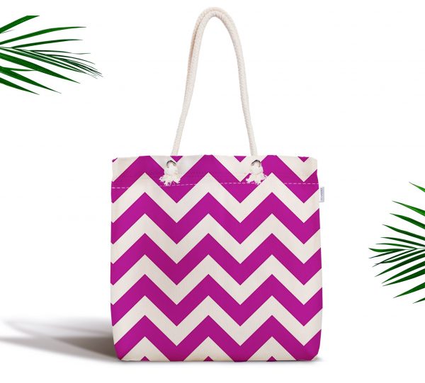 Zigzag Desenli Dijital Baskılı Fermuarlı Modern Kumaş Çanta
