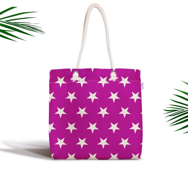Yıldız Desenli Dijital Baskılı Modern Fermuarlı Kumaş Çanta