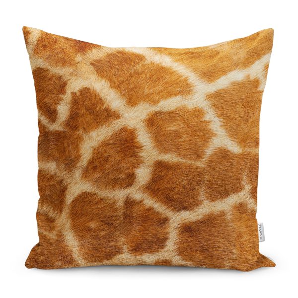 RealHomes Kahverengi Zeminde Zürafa Motifli Kürk Desenli Dijital Baskılı Yastık Kırlent Kılıfı
