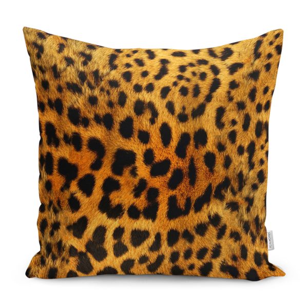 RealHomes Kahverengi Zeminde Leopar Motifli Post Desenli Dijital Baskılı Yastık Kırlent Kılıfı