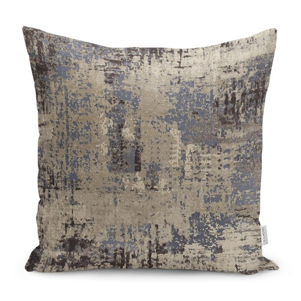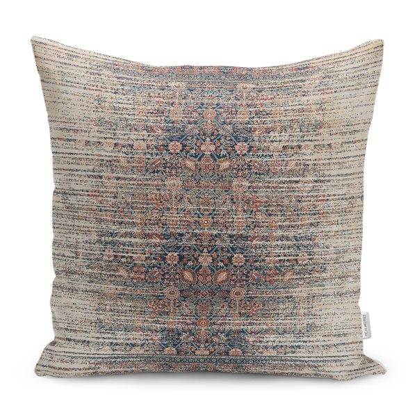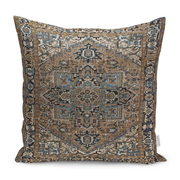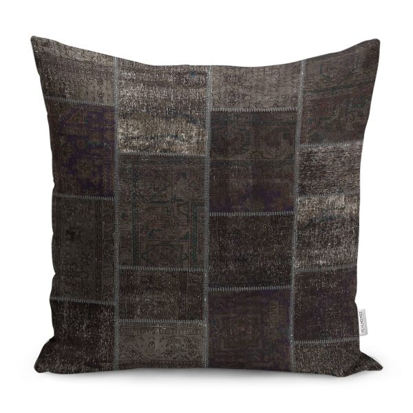 RealHomes Kahverengi Zeminde Eskitme Motifli Geometrik Desenli Dijital Baskılı Yastık Kırlent Kılıfı
