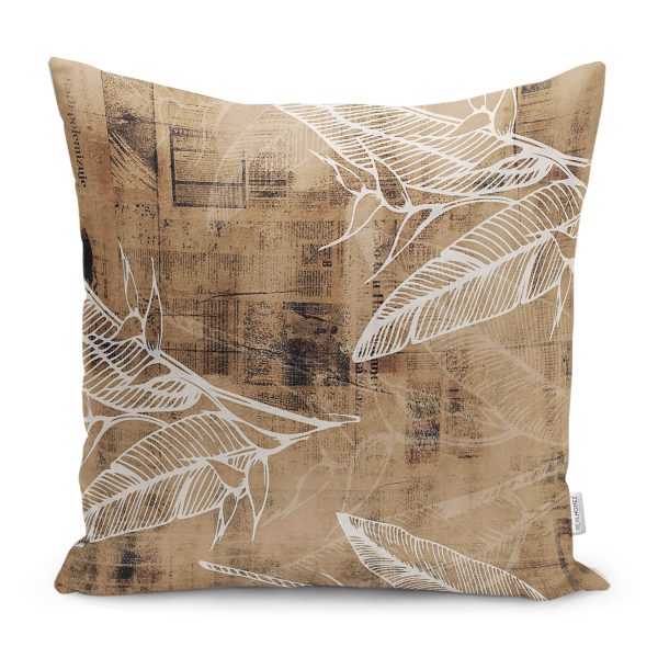 RealHomes Kahverengi Zeminde Retro Motifli Yaprak Desenli Dijital Baskılı Yastık Kırlent Kılıfı
