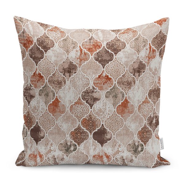 RealHomes Kahverengi Zeminde Morrocan Motifli Eskitme Desenli Dijital Baskılı Yastık Kırlent Kılıfı