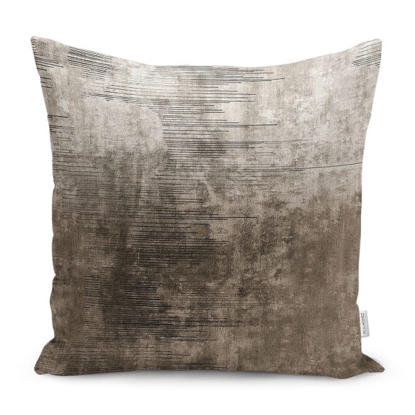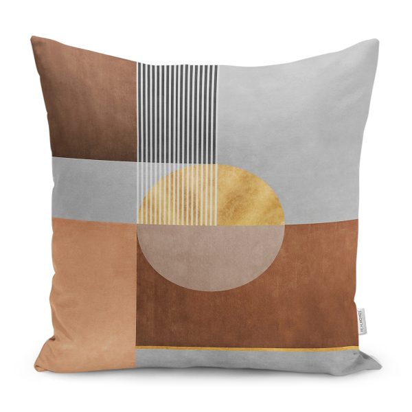 RealHomes Kahverengi Zeminde Geometrik Motifli Modern Desenli Dijital Baskılı Yastık Kırlent Kılıfı