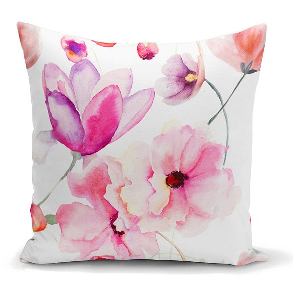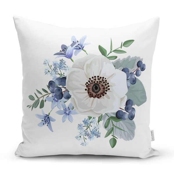 Beyaz Zeminli Çiçek Temalı Dijital Baskılı Modern Kırlent Kılıfı