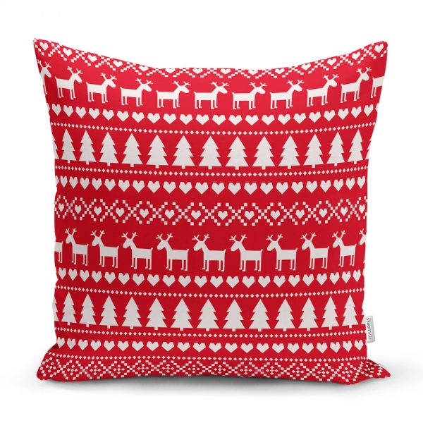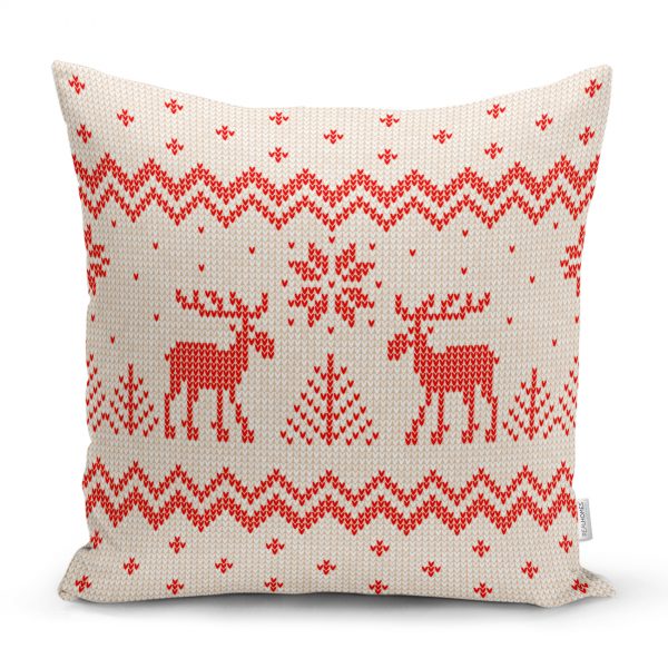 Kanaviçe Motifli Yılbaşı Temalı Dijital Baskılı Kırlent Kılıfı