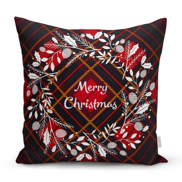 Ekose Merry Christmas Desenli Dijital Baskılı Yastık Kırlent Kılıfı