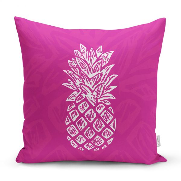 Fuşya Zeminde Ananas Desenli Modern Tasarım Yastık Kırlent Kılıfı