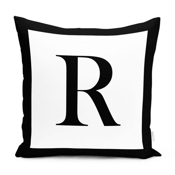 RealHomes Siyah Beyaz R Harfli Yastık Kırlent Kılıfı
