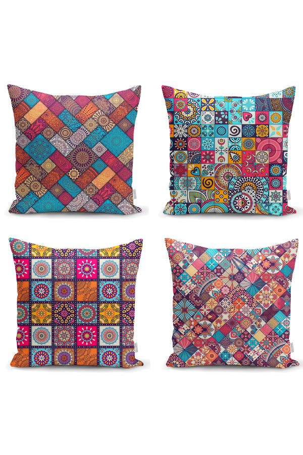 Dekoratif Kilim Desenli 4’lü Yastık Kırlent Kılıf Seti