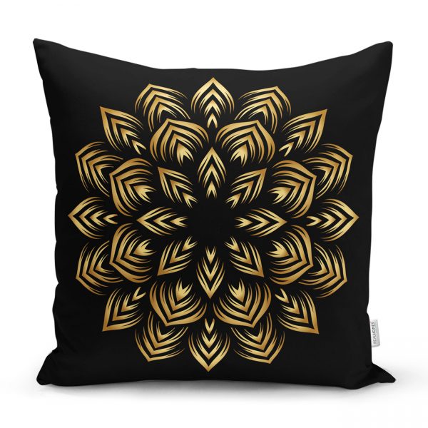 Siyah Zeminde Gold Mandala Motifli Yastık Kılıfı