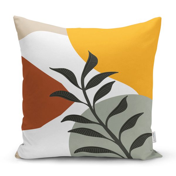 Renkli Zemin Üzerinde Yaprak Desenli Dijital Baskılı Modern Yastık Kırlent Kılıfı
