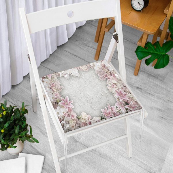 Çiçek Motili Dekorati Kare Sandalye Minderi