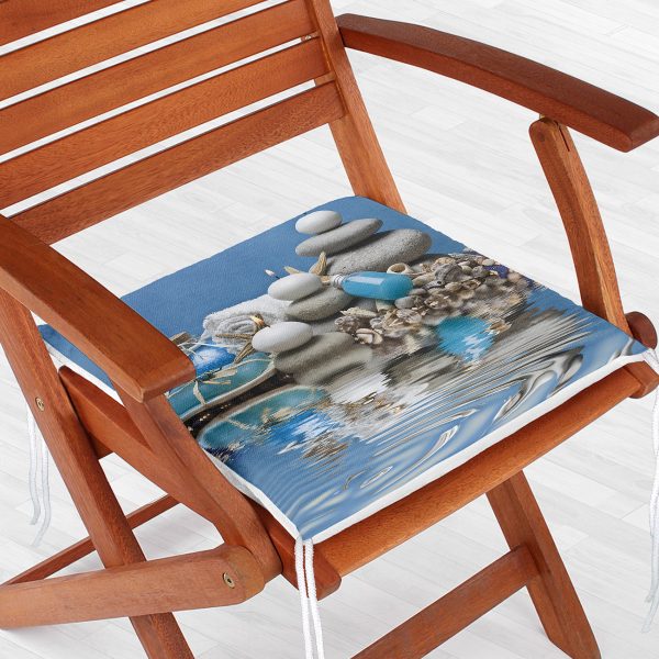 Mavi Dünya Desenli Dekorati Kare Sandalye Minderi 40x40cm Fermuarlı