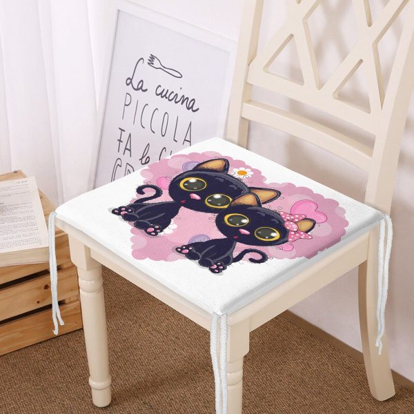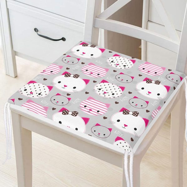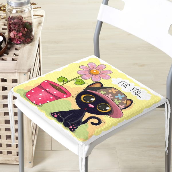 Sevimli Kediler Dekorati Kare Sandalye Minderi 40x40cm ermuarlı