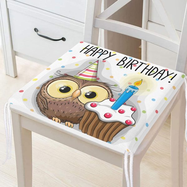 Baykuş Desenli Dekorati Kare Sandalye Minderi