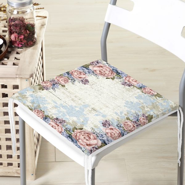 Çiçek Desenli Dekorati Kare Sandalye Minderi 40x40cm ermuarlı