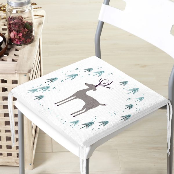 Geyik Desen Dekorati Kare Sandalye Minderi 40x40cm ermuarlı