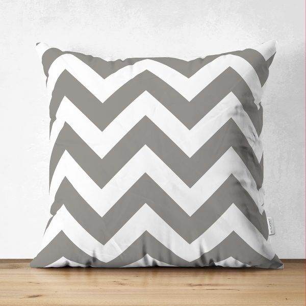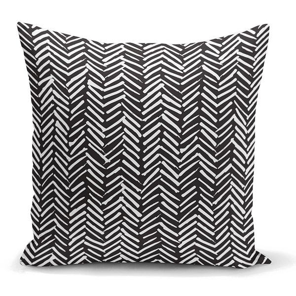 Çift Taraflı Zİgzag Desenli Dijital Baskılı Dekoratif Süet Yastık Kırlent Kılıfı