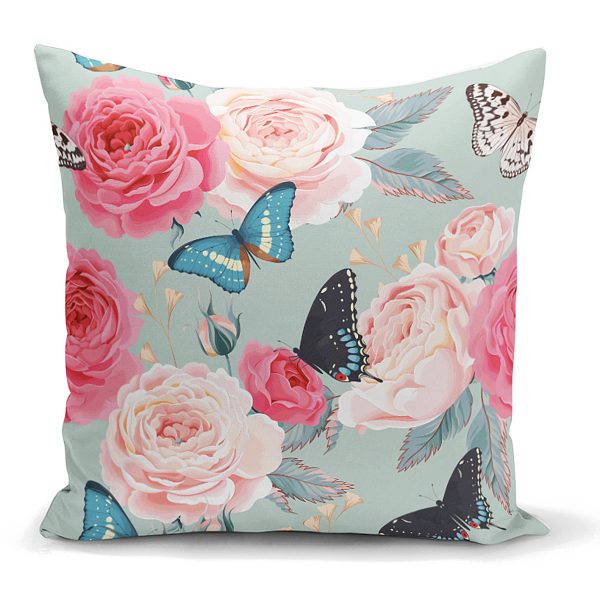 Çiçek Desenli Dijital Baskılı Dekoratif Yastık Kırlent Kılıfı