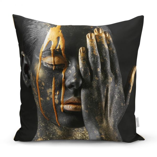 Gold Afrika Woman Tasarımlı 3D Modern Yastık Kırlent Kılıfı