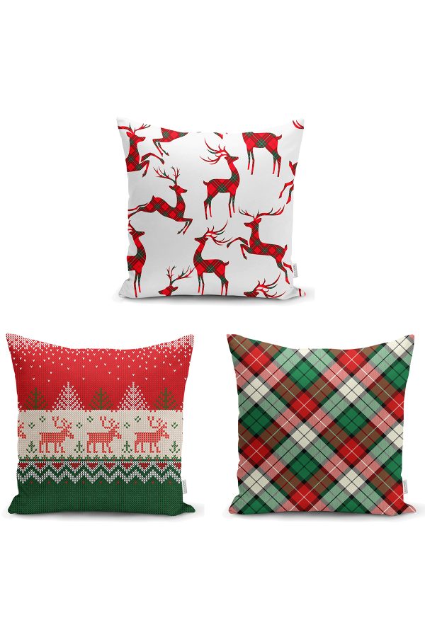 Ekoseli Yılbası 3’lü Yastık Kırlent Kılıf Seti